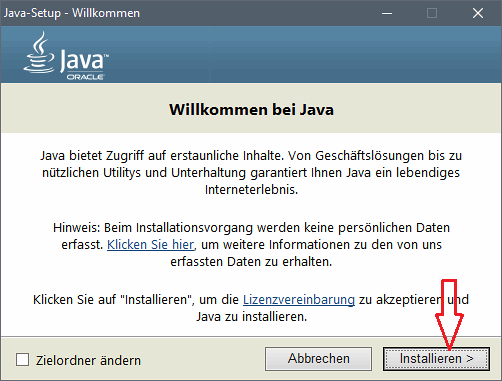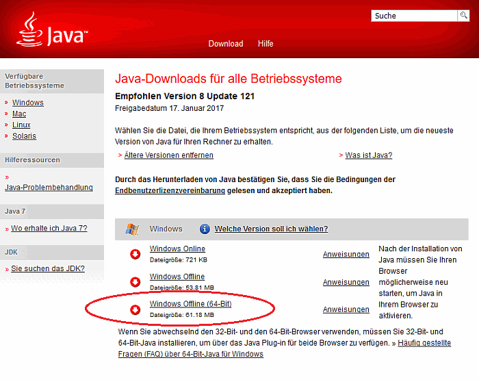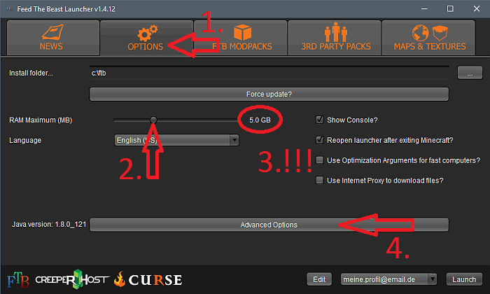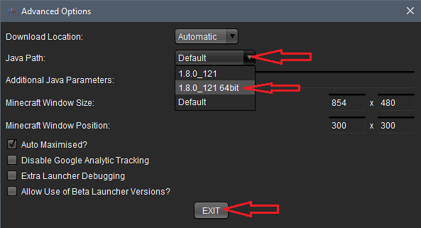Wähle nun bei Java Path: deine aktuelle 64bit Java Version