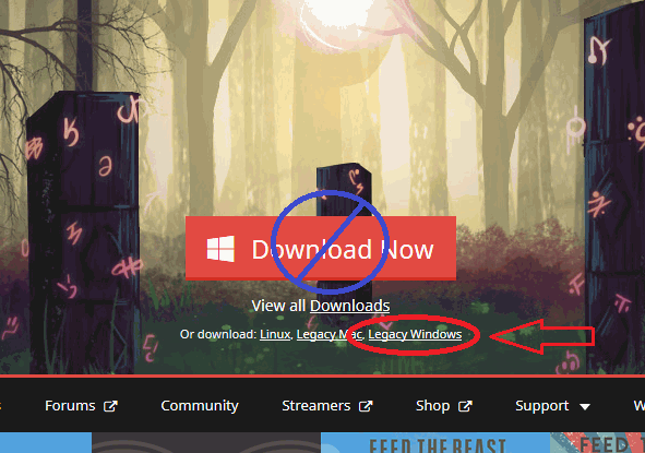 Gehe auf die FTB-Seite und klicke auf Legacy Windows