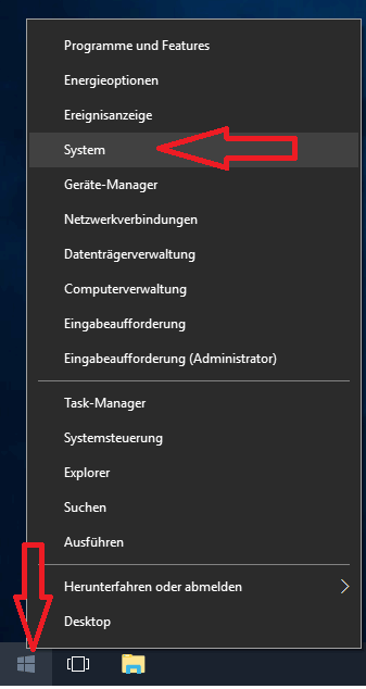Rechtsklicke auf das Windows Logo und anschließen auf System